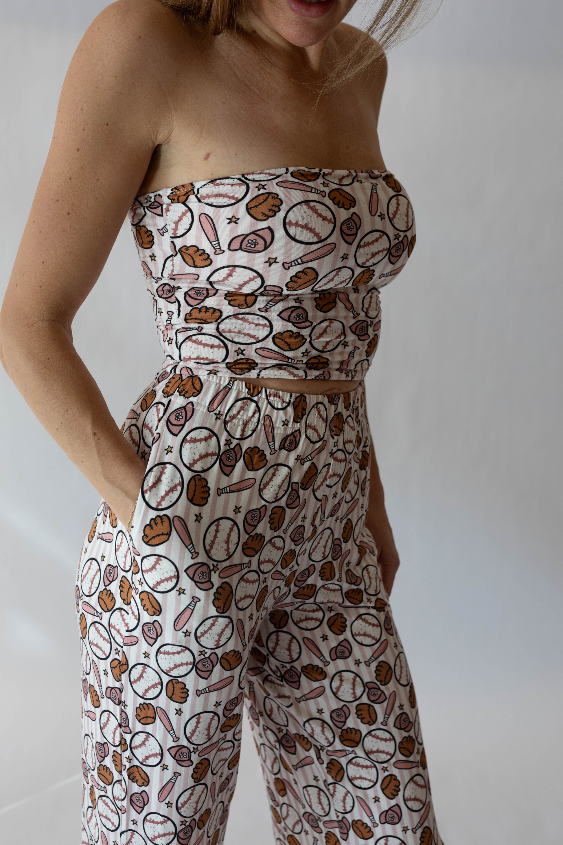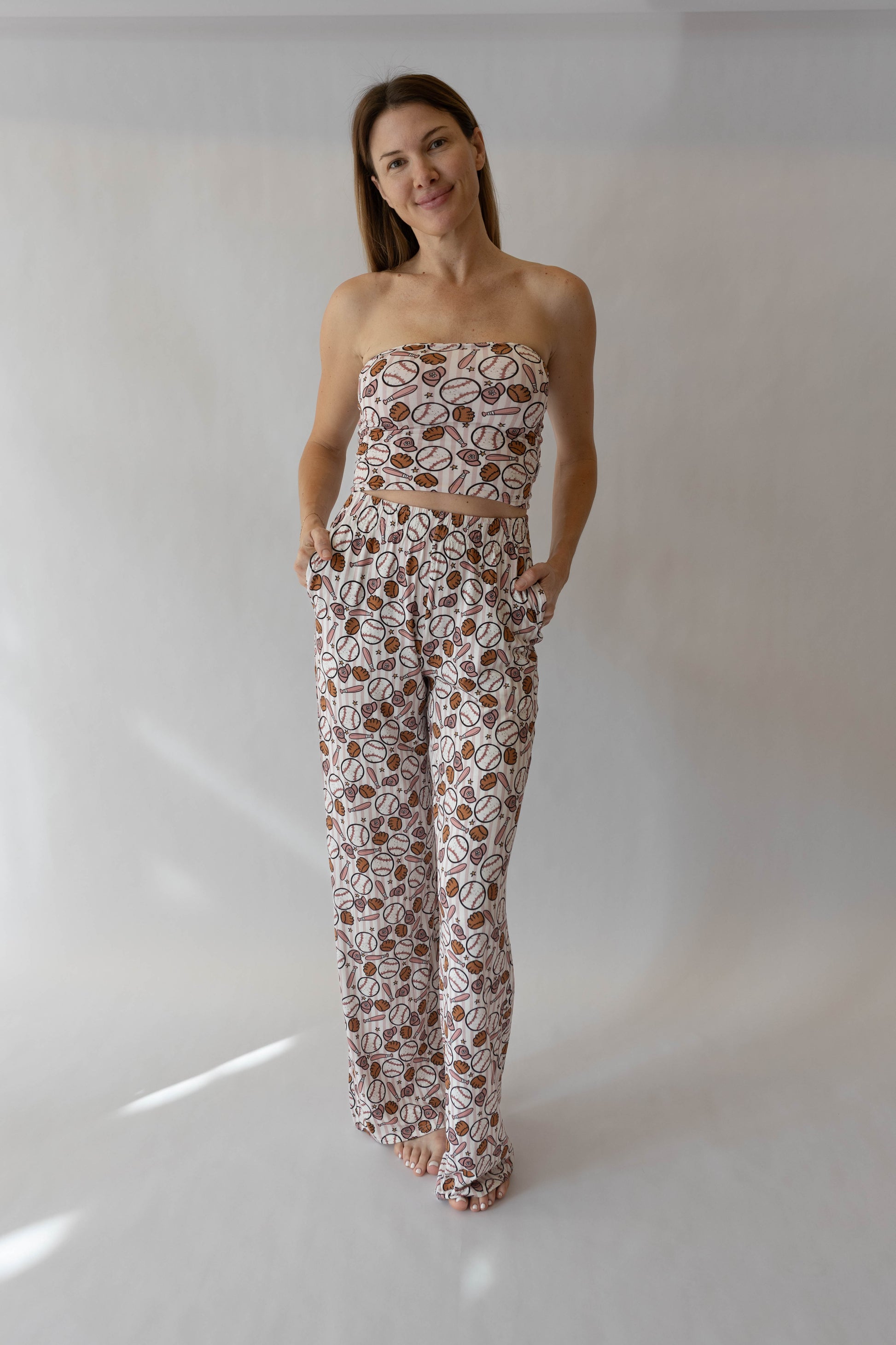 Designed with a sleek tube top and flowy wide-leg pants, this set is made to match your mini and effortless to mix and match. Perfect for all-day wear that transitions seamlessly into the evening.